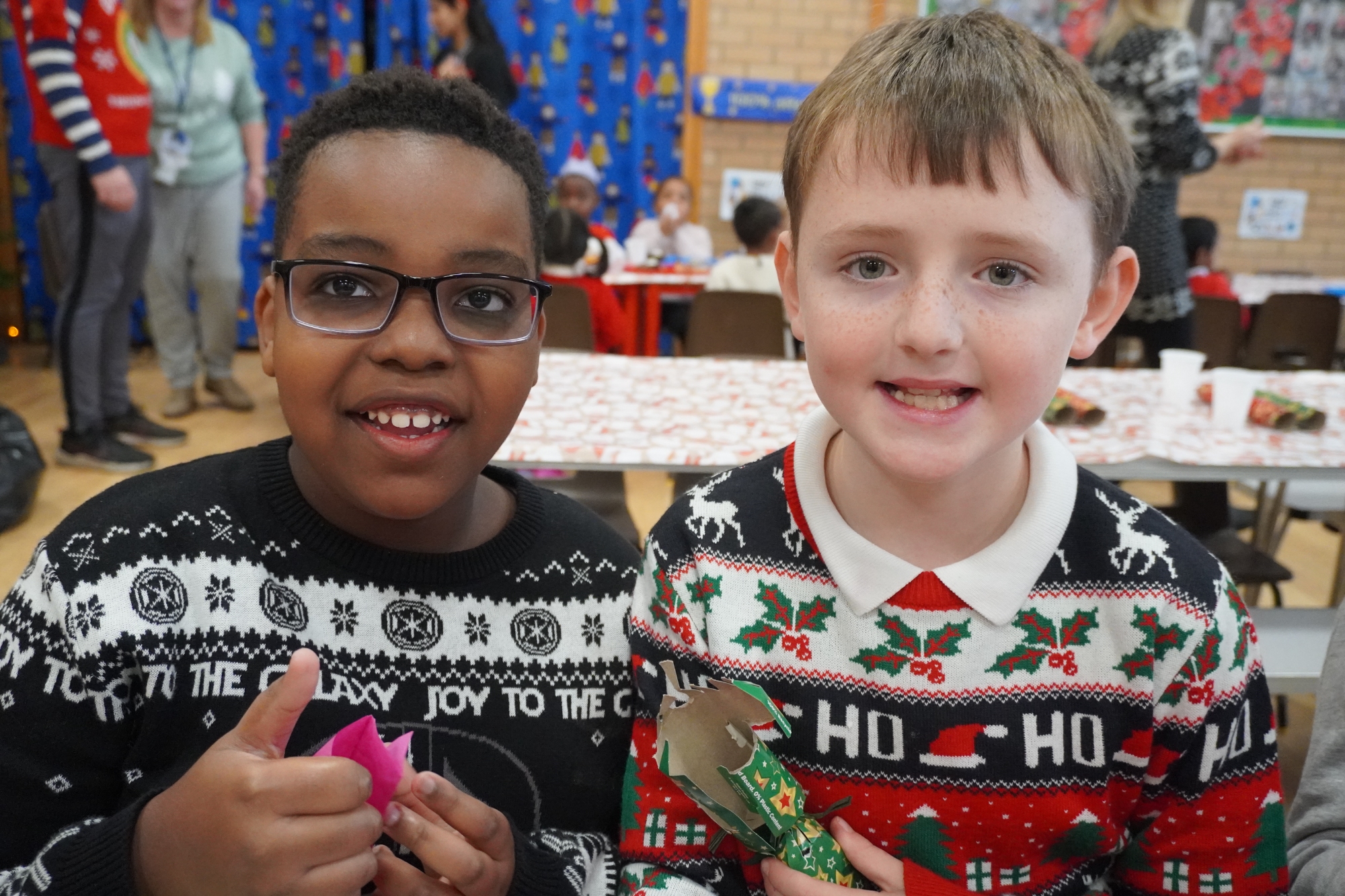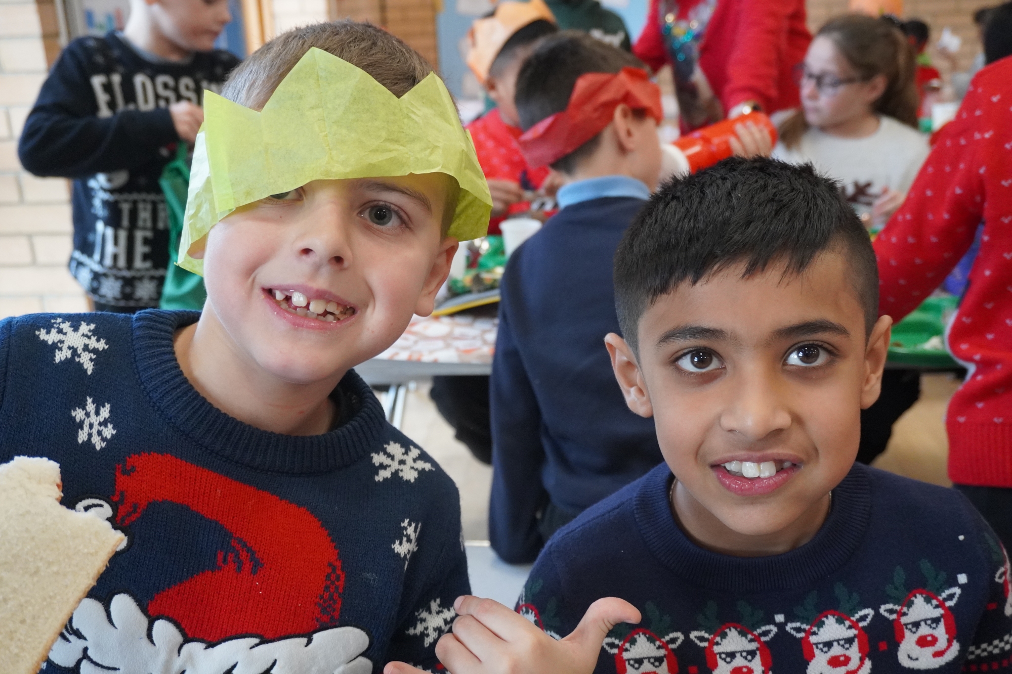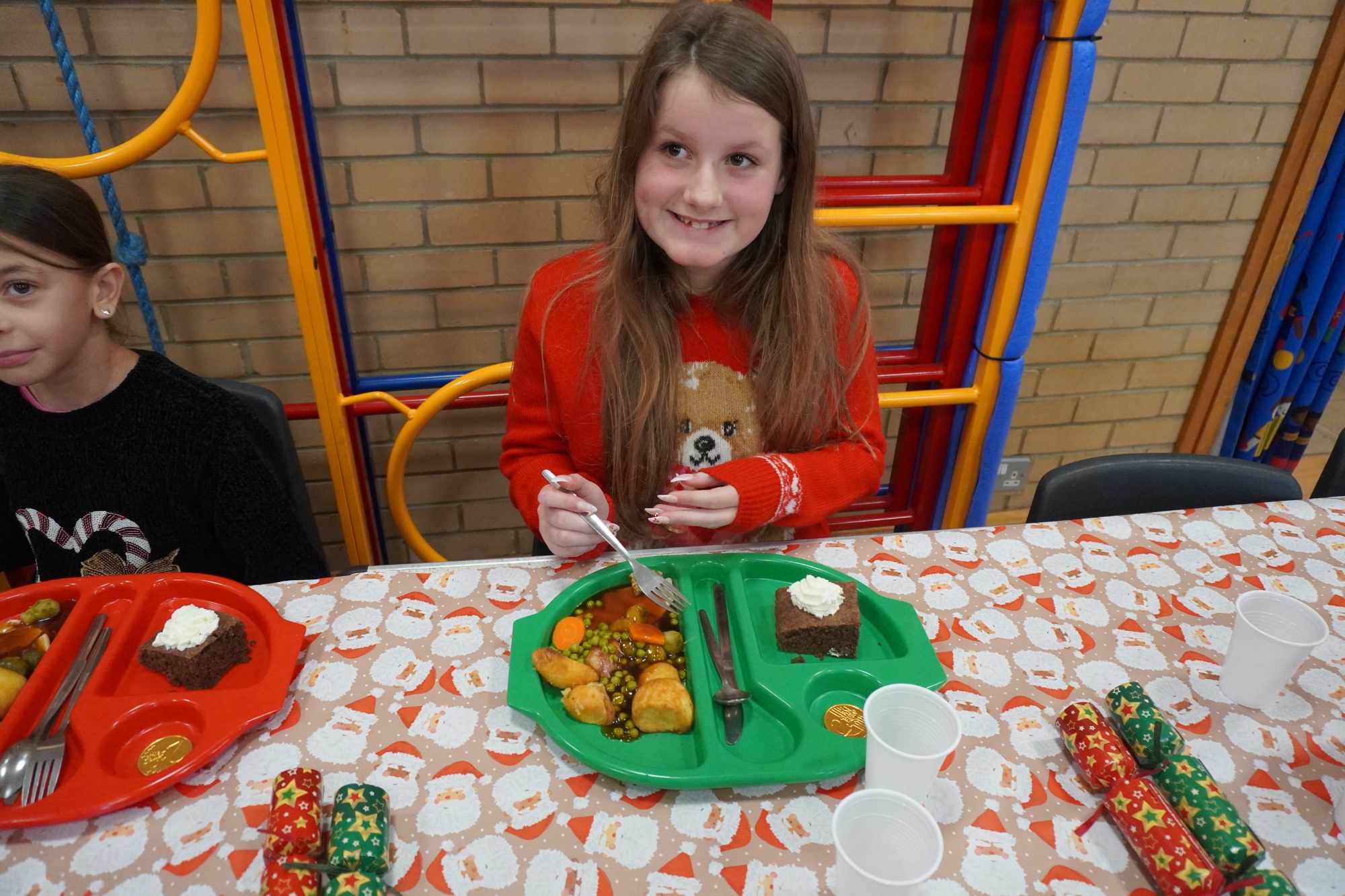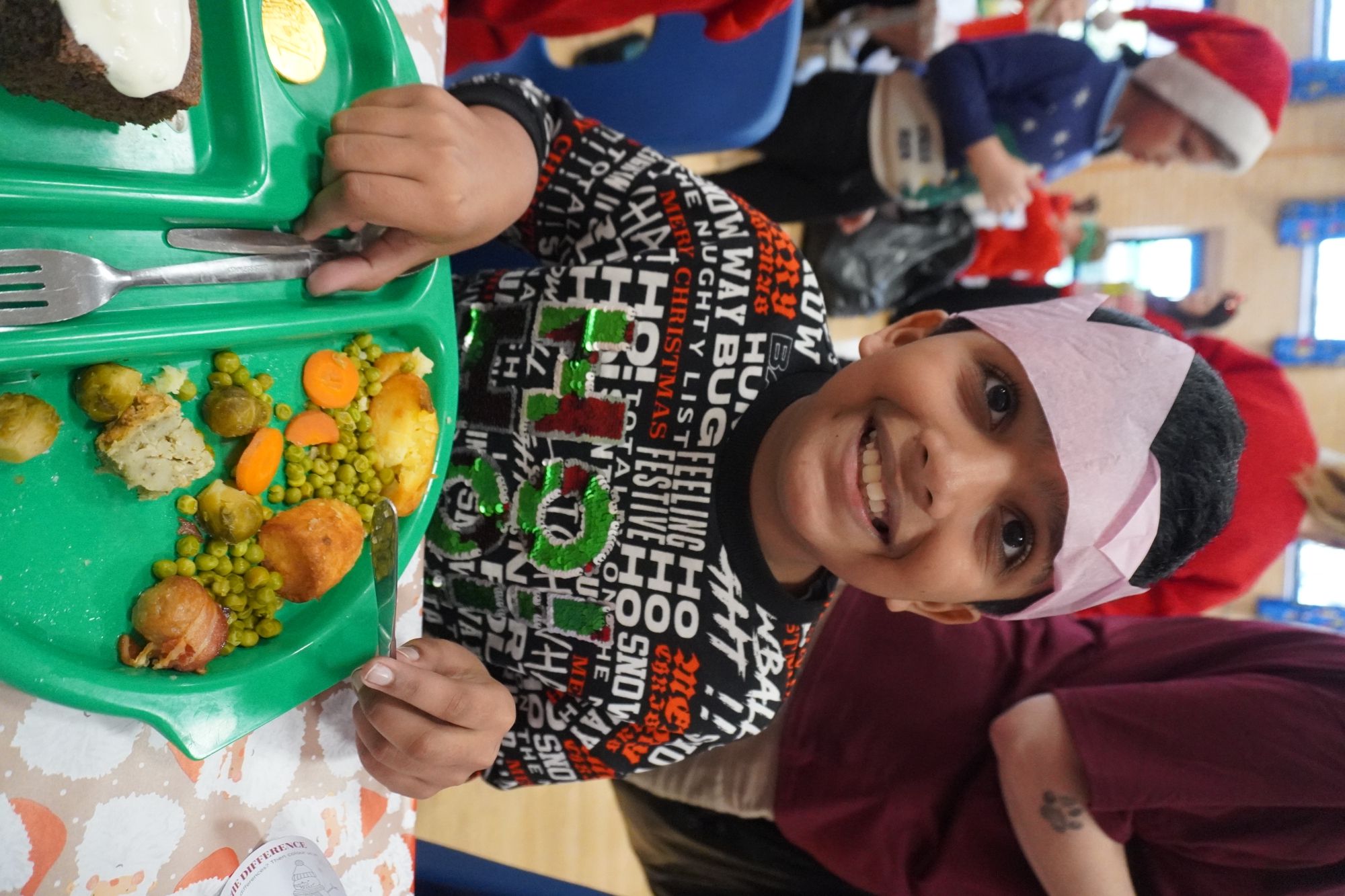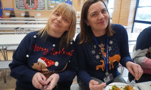 On Thursday 11th December, our pupils and staff had their Christmas dinner.  Dressed in their Christmas jumpers, they enjoyed pulling crackers together and the delicious Christmas dinner – including chocolate cake and cream!