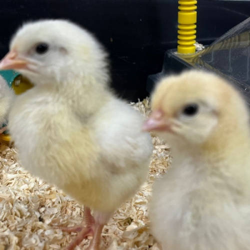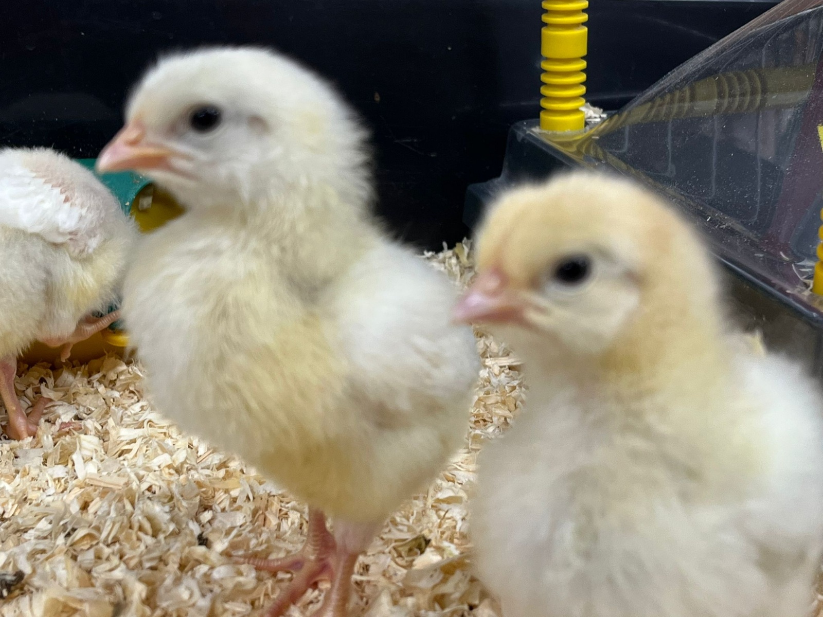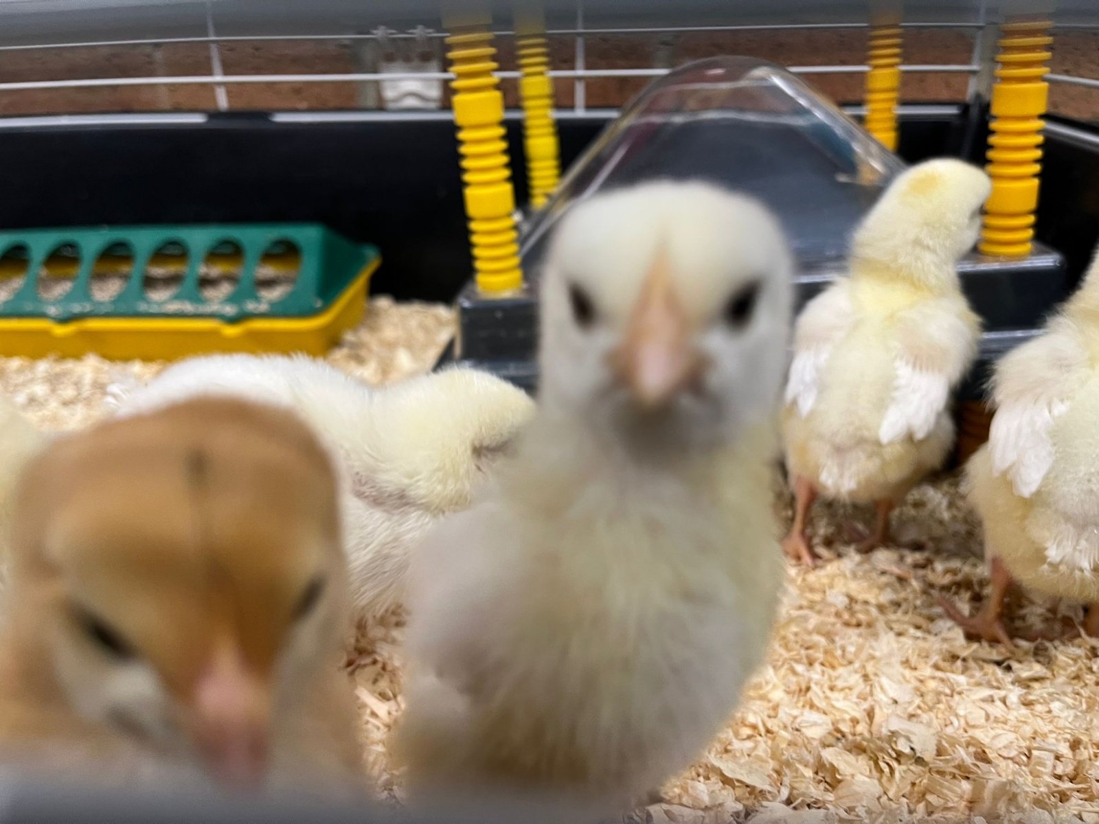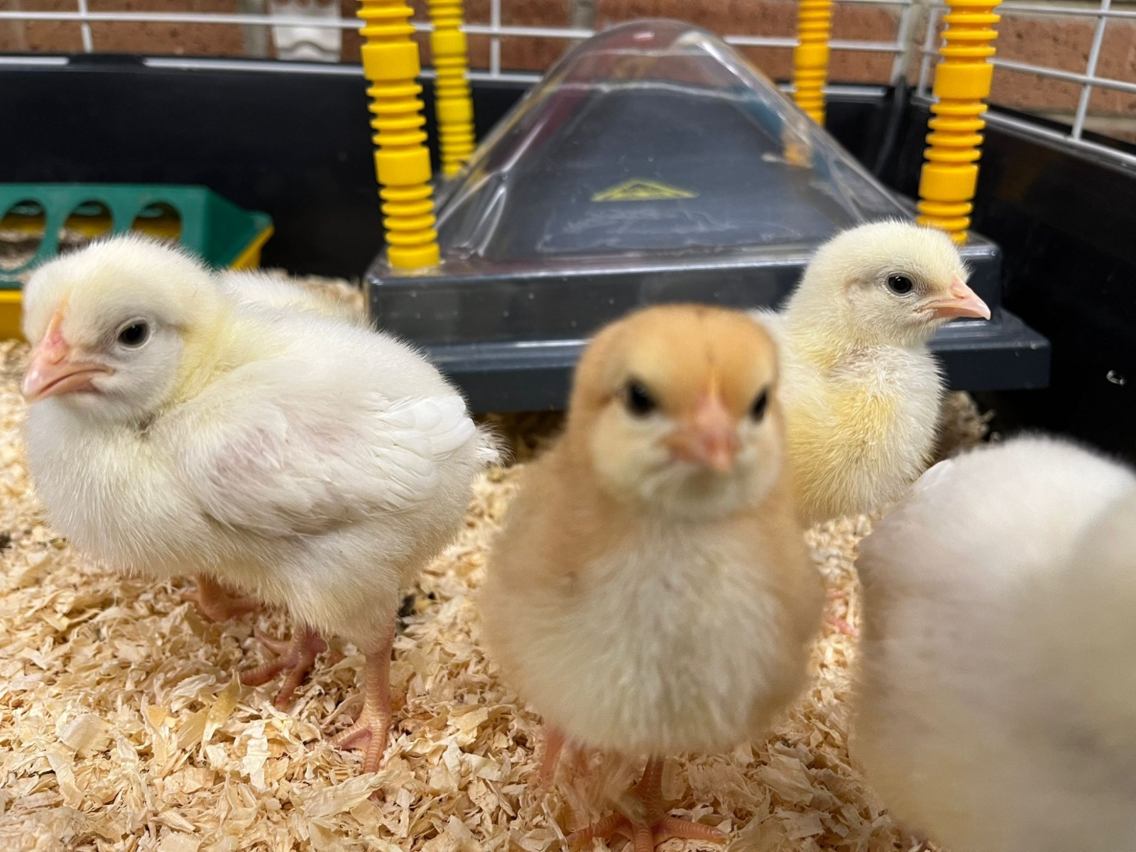 Every so often, the chicks go under this special device that keeps them warm!
