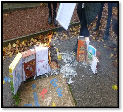 History In Year 1, we have been looking at the Great Fire of London. We discussed the main events. We created houses and Miss Jones burnt them to demonstrate what happened in the historical event. |