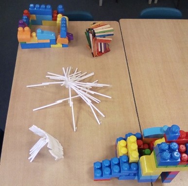 Science: Everyday Materials Year 1 looked at the story ‘The Three Little Pigs.’ They talked about the different materials the houses were made out of. Working in a team, they built the houses out of straw (straws), sticks (wooden lolly sticks) and bricks (Lego). Before doing this, they made predictions about which house they thought would withstand the ‘big bad wolf’ (hairdryer!) and then recorded these onto post-it notes. After completing the investigation, Year One discussed the conclusion by completing the sentence stem…’ The brick houses were the strongest because…’ |