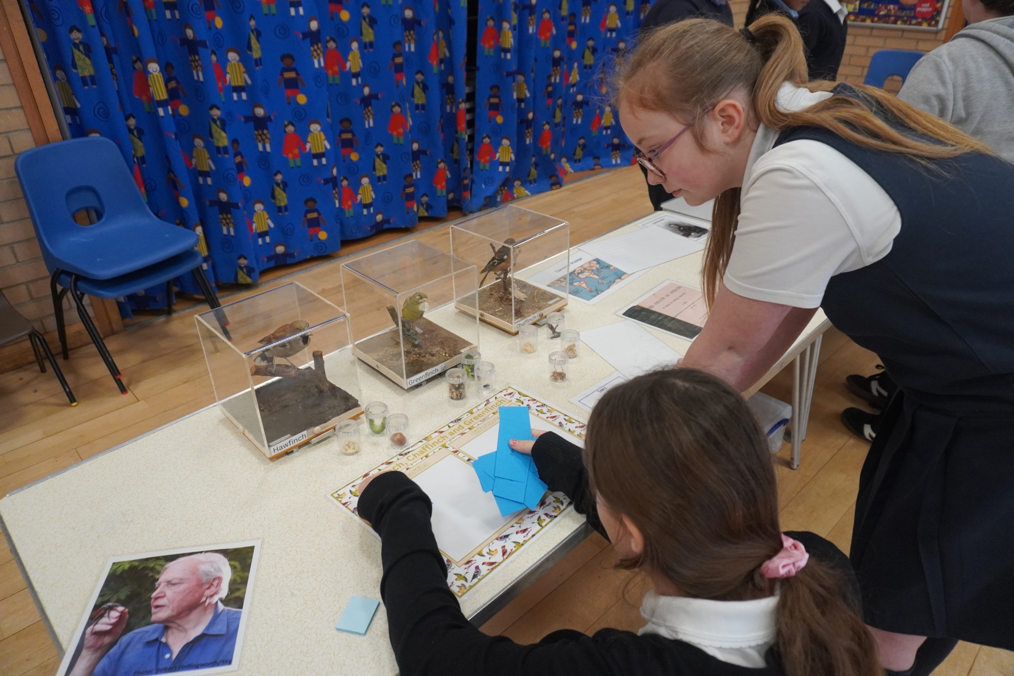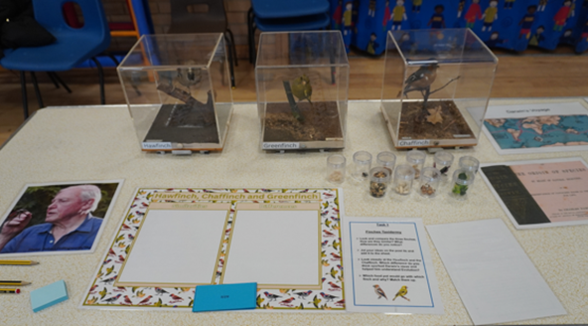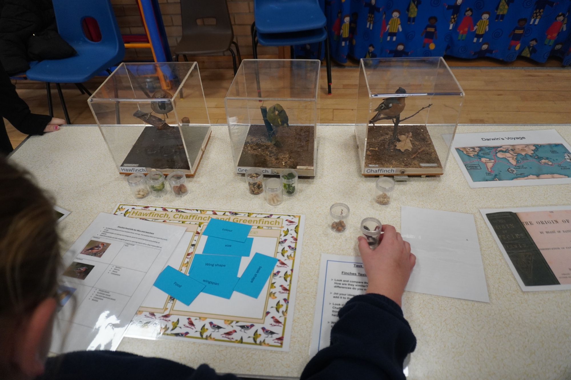 ‘Meet the Theorists’ Workshop As a start for their Evolution and Inheritance topic, Year 6 took part in a workshop. They looked at artefacts from the Leicestershire Library museum collections and found out about the work of Mary Anning, Charles Darwin and Henry Bates. The children looked at real fossils to gather evidence which supports Mary Anning’s evolutionary theories. They also studied the museum’s set of real finches to see how Darwin used these to explain his ideas of adaptation to the environment. |